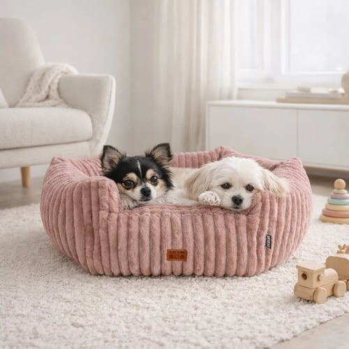 Luna Plush Corduroy Dog Bed – Pink