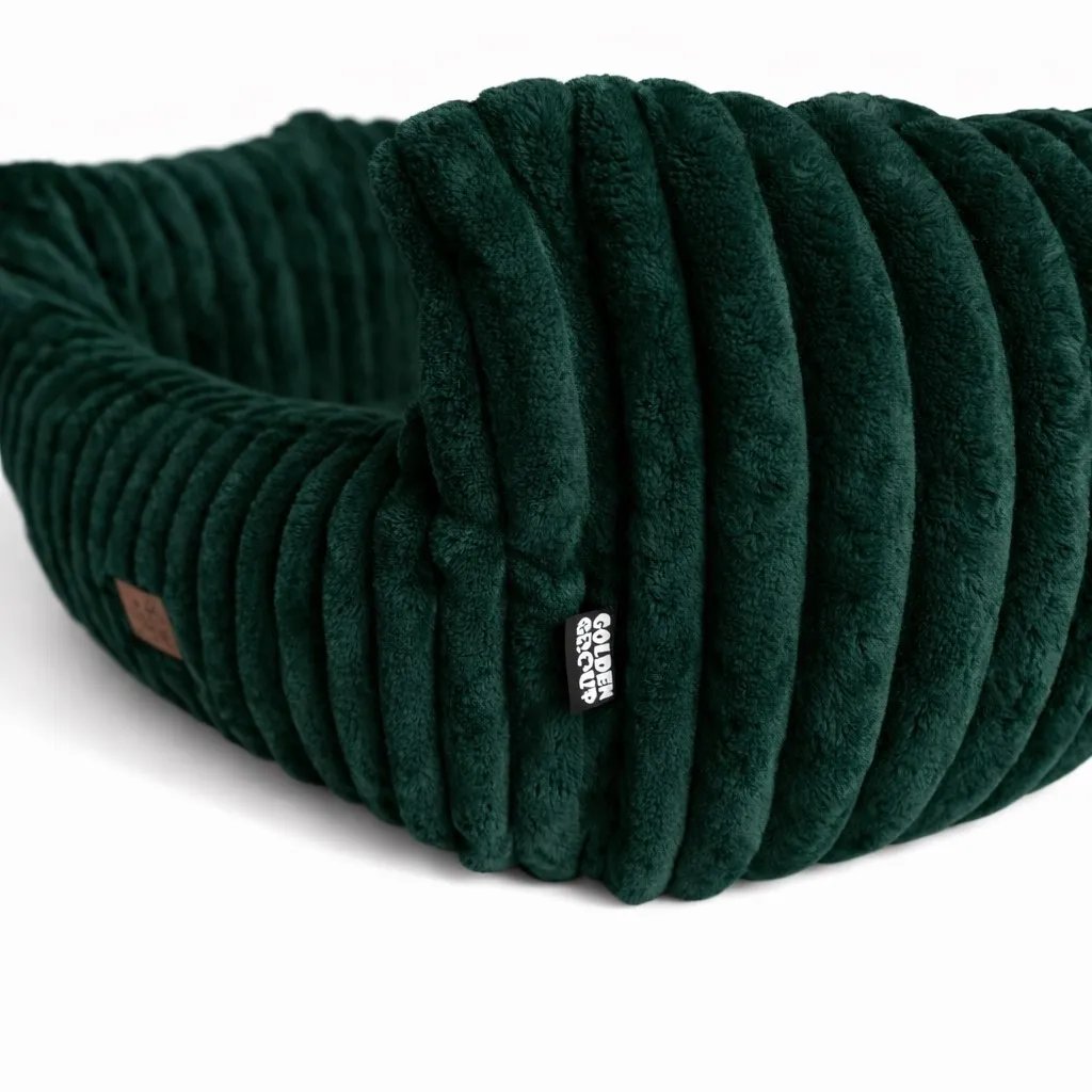 The bottle green corduroy dog bed combines outstanding comfort, long‑lasting durability and a stylish, timeless look. Designed for daily rest, it offers dogs of all breeds a soft, secure place to sleep and relax. The plush corduroy fabric is warm, velvety to the touch and highly resistant to everyday use. All materials are pet‑safe, free from harmful substances and suitable even for dogs with sensitive skin.