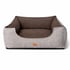 The bed is crafted from two carefully selected fabrics. The outer layer is made from a thick, textured material that mimics melange linen, giving the bed an elegant, organic appearance and excellent durability. The inner surface features a dirt‑resistant bouclé fabric — soft to the touch, practical in daily use and wonderfully inviting for your dog.
