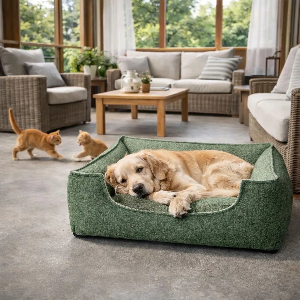 This green dog bed combines exceptional softness, durability and a stylish, natural look. Designed for everyday relaxation, it provides dogs of all breeds with a safe, cosy place to sleep and unwind.
