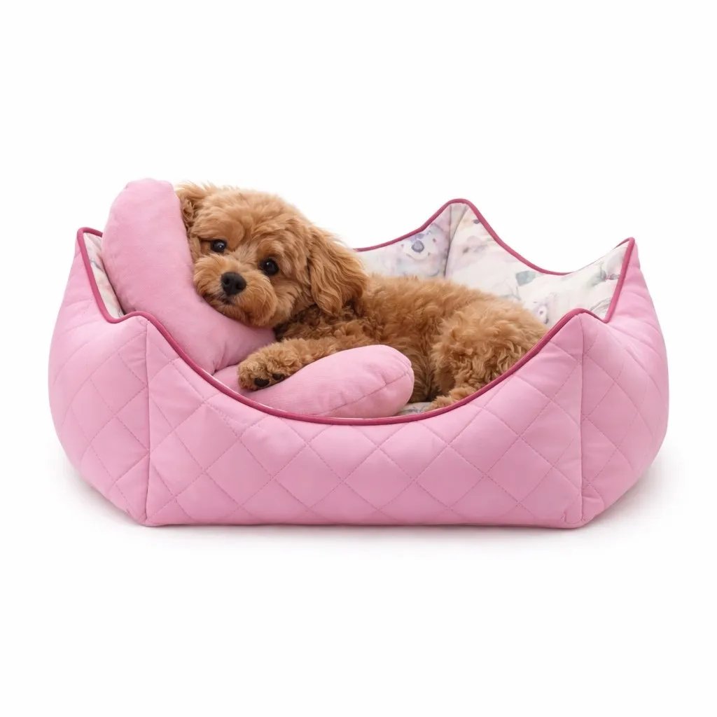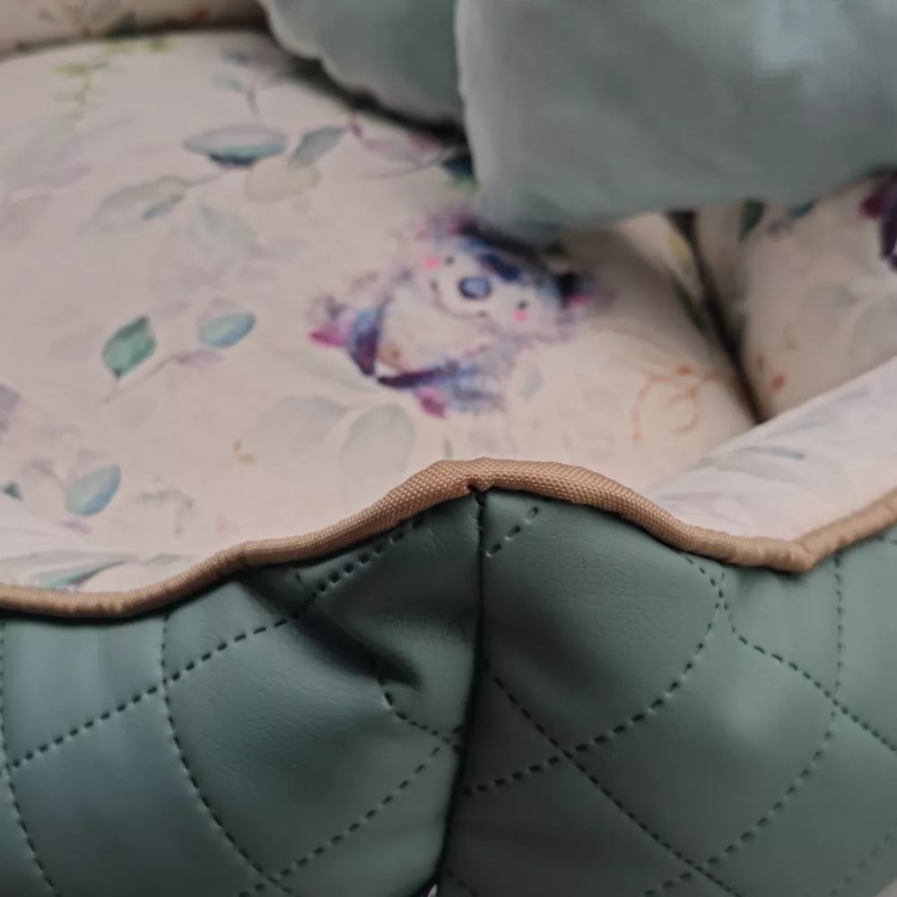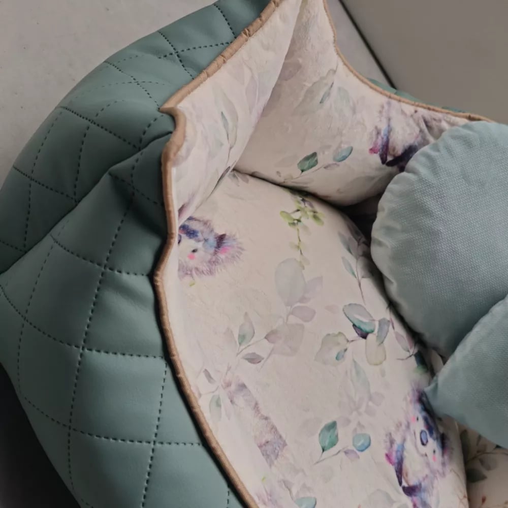 Treat your dog to a royal retreat with the sage green Princess bed — a luxurious combination of soft velvet and quilted eco‑leather. Crafted from thick, durable polyester and filled with ergonomic foam granules, it offers plush comfort and dependable support. Charming heart and circle cushions add a playful, decorative touch, while the removable zip cover makes cleaning effortless. Ideal for balconies, terraces or kennel spaces, this bed is designed for dogs who enjoy a little everyday indulgence.