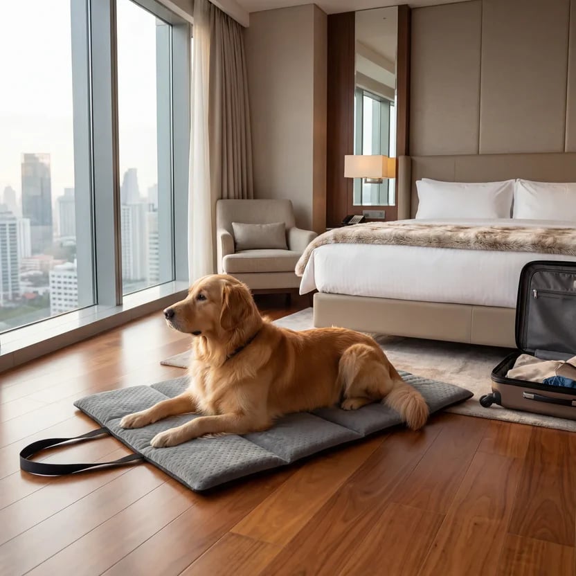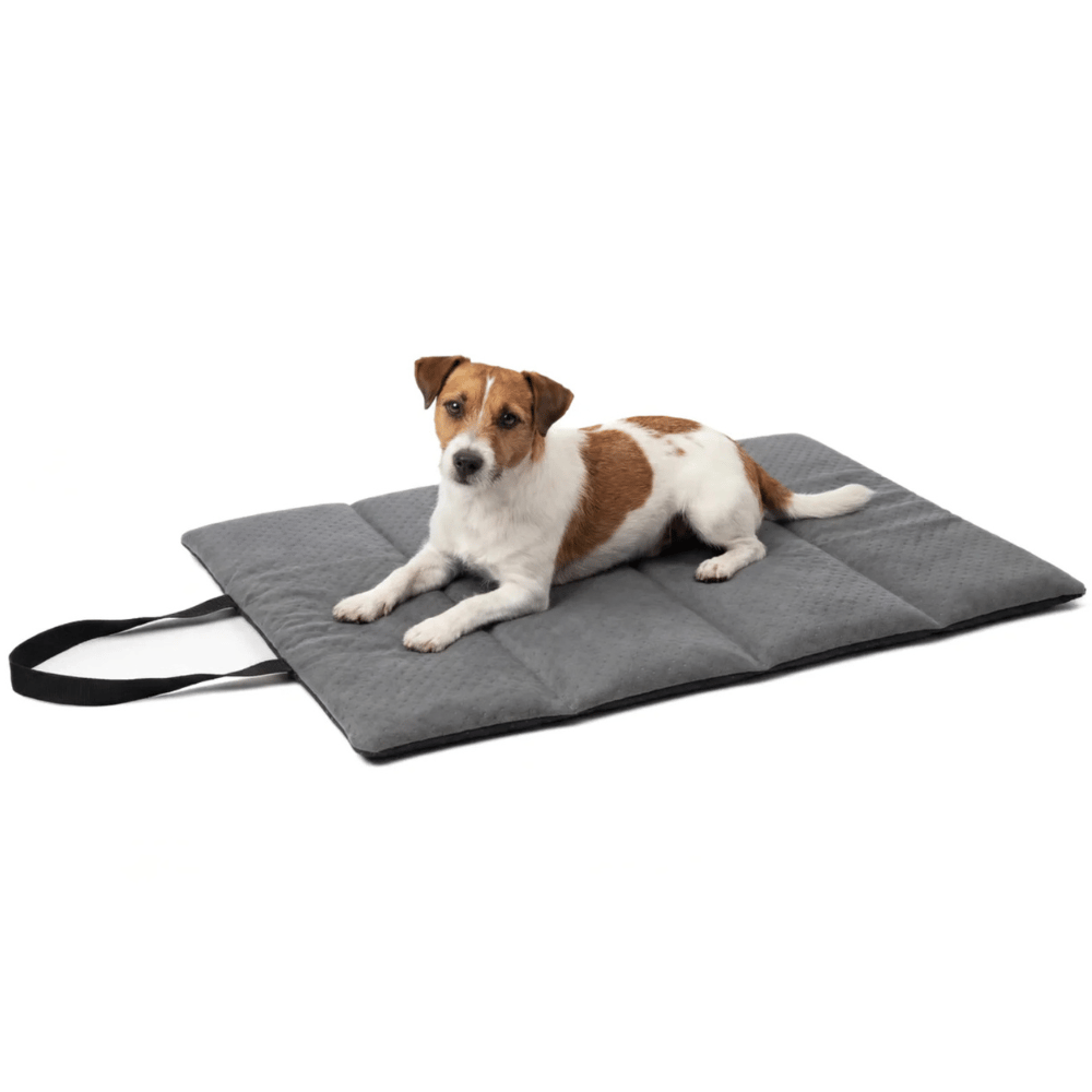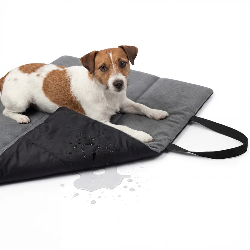 A mobile bed for dogs and cats that works as a travel mat, car bed and comfortable resting spot at home. Lightweight, foldable, easy to carry and moisture‑resistant — offering comfort, insulation and a familiar space for your pet wherever you go.