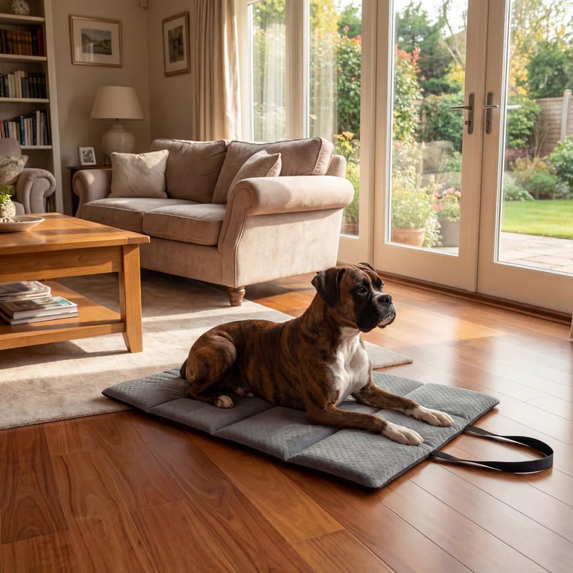 TravelNest™ is a functional travel bed for dogs and cats, combining comfort, mobility and everyday practicality. Designed for pet owners who want to give their companion a safe, familiar resting space whether they’re at home, in the car, on holiday or away for the weekend. It’s the perfect travel mat for the car, camping, hotels, terraces or as an additional bed at home.