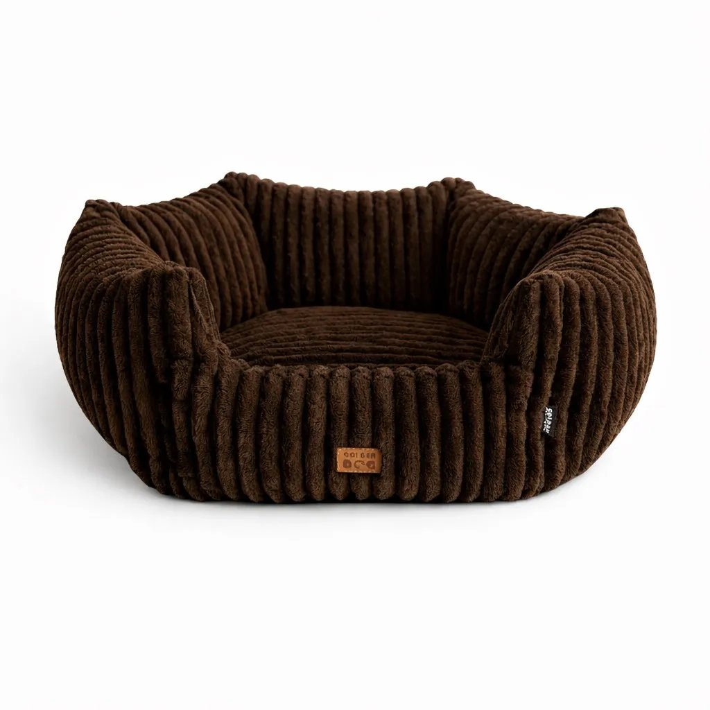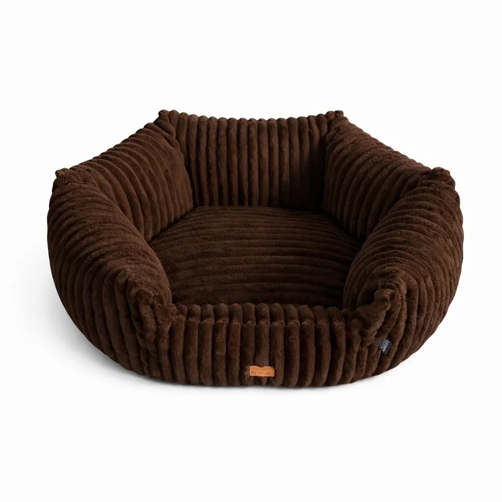 The brown corduroy dog bed offers everyday comfort, durability and a stylish, timeless look. Made from a soft, velvety corduroy fabric that is pleasant to the touch and resistant to daily wear, it provides dogs of all breeds with a cosy and secure place to rest. All materials are pet‑safe, free from harmful substances and suitable even for sensitive skin.