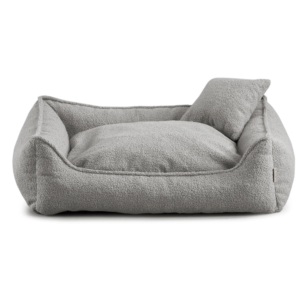 The light grey Bear Bouclé Dog Bed offers a soothing, stylish retreat for your dog, combining a luxurious textured finish with supportive, ergonomic comfort. Made from soft‑touch bouclé fabric and filled with adaptive shredded foam, it provides gentle contouring and a restful sleeping experience. Its rich, modern colour adds a refined accent to any interior, while the easy‑care materials and optional personalised embroidery make it both beautiful and practical.