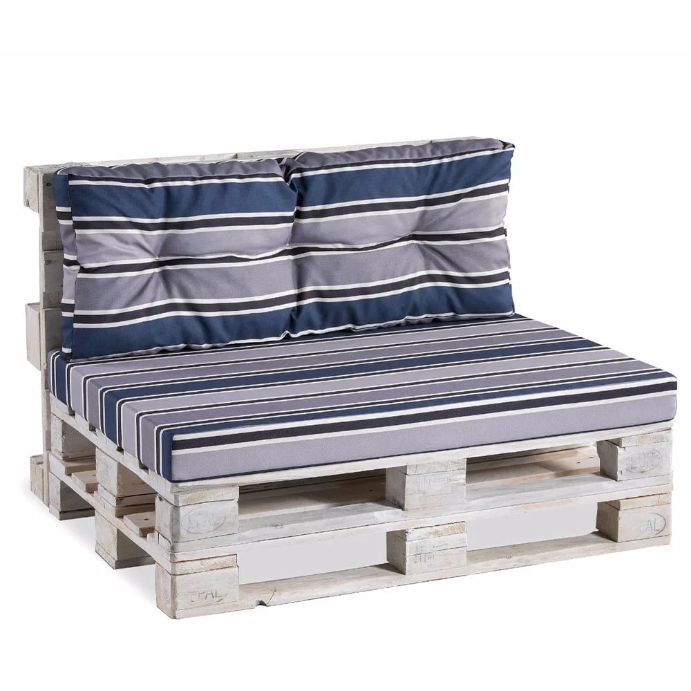 Outdoor Sofa Cushions – Pallet Cushion for Garden & Conservatory – PPF – Grey&Navy Stripes
