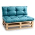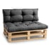The collection includes several cushion types, allowing you to create a layout tailored to your space. Choose from the 60×40 cm corner cushion, the 120×80 cm seat cushion or the 120×40 cm backrest — or select ready-made sets combining seat and backrest, including full double‑pallet configurations. With this modular system, you can build anything from a compact pallet bench to a spacious corner sofa.