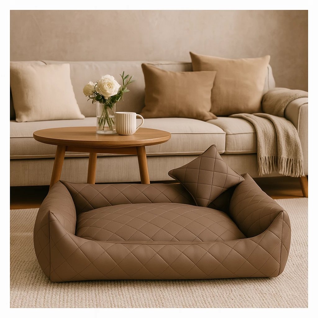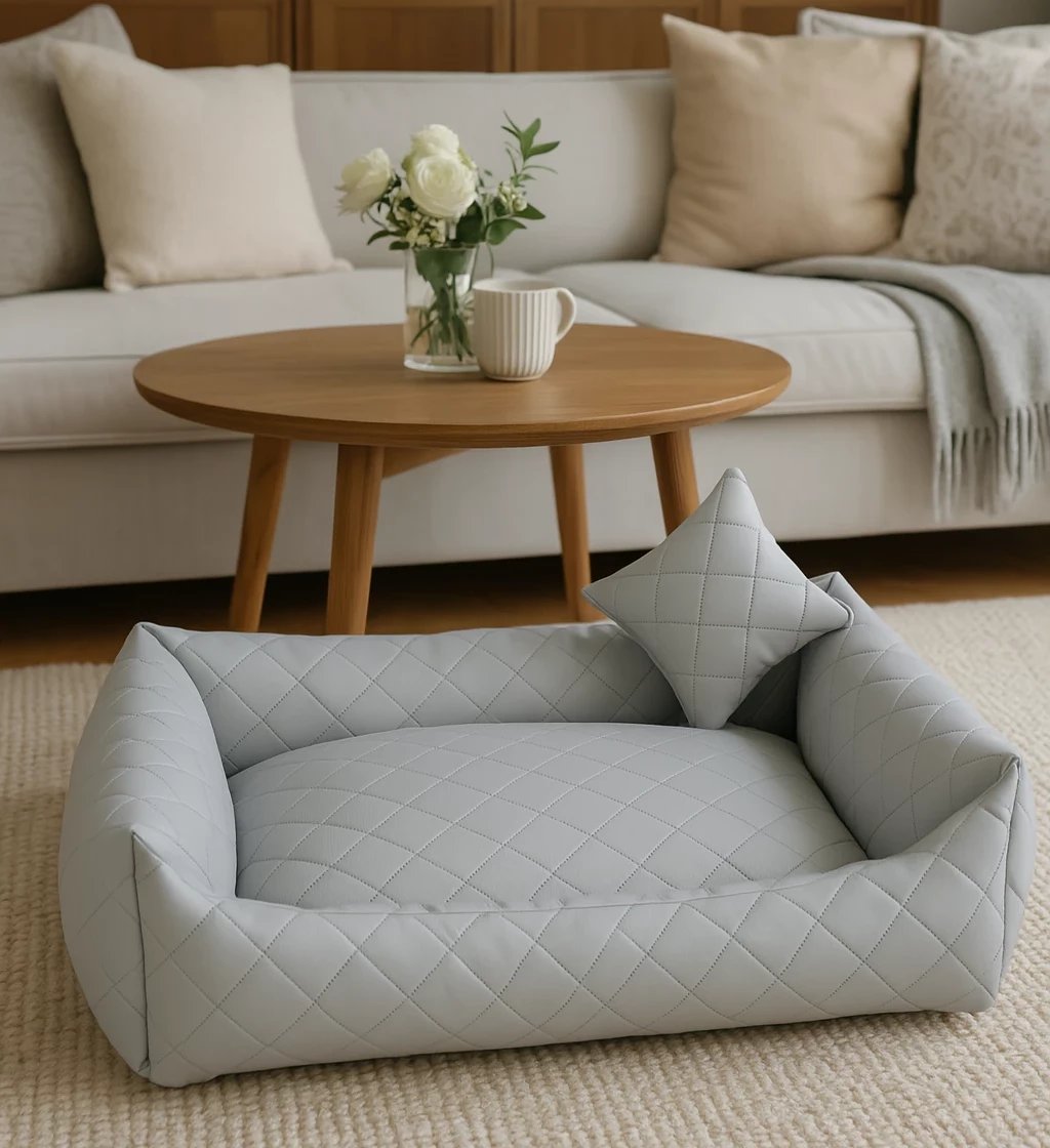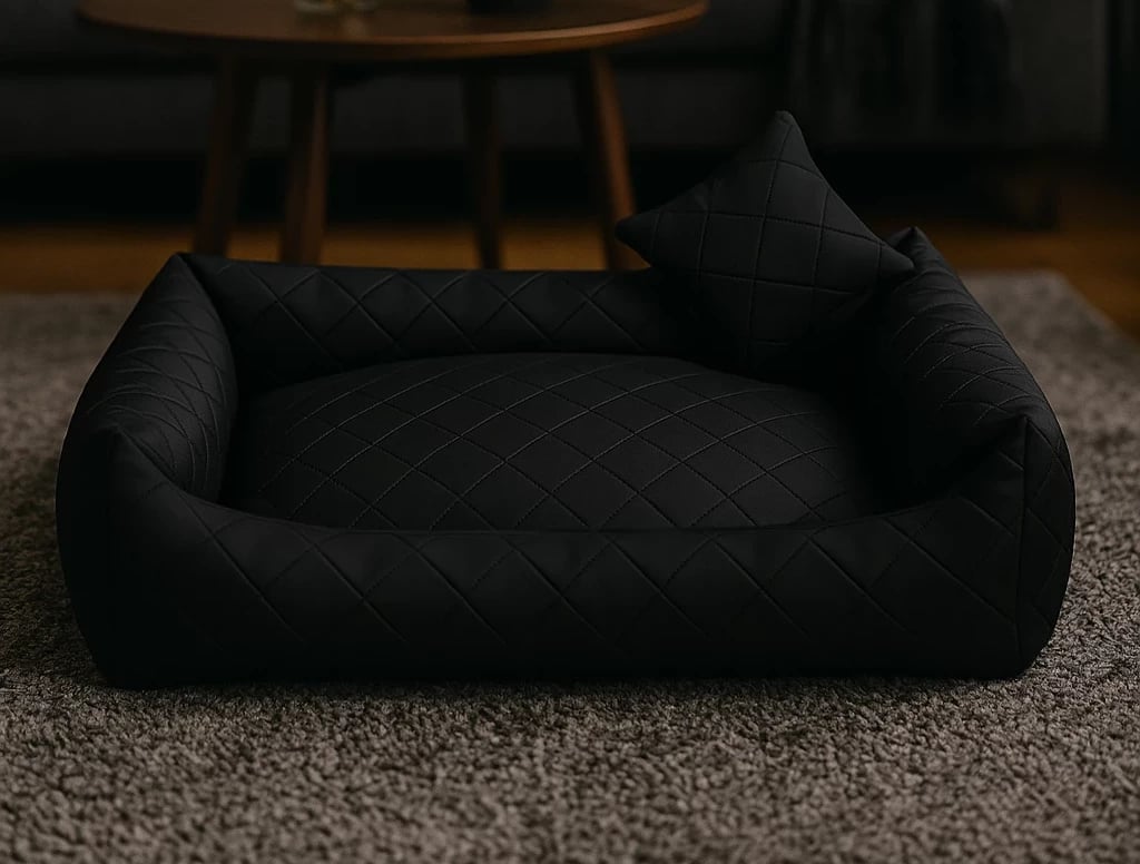 The fully quilted Dark Blue Eco Leather dog bed is a sleek, modern choice for pets who enjoy comfort and for owners who appreciate minimalist, industrial or monochrome interiors. Upholstered in high‑quality quilted eco‑leather, it features a clean, structured silhouette with a bold yet timeless look that blends effortlessly into contemporary homes.